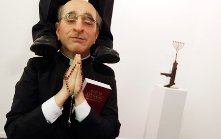 ويعرض العمل الفني المعروض في الدورة التاسعة والعشرين للمعرض الدولي للفن المعاصر والمعروف باسم " أركو" شخصًا مسلمًا ساجدًا على الأرض ويعلوه قس راكع يعلوه حاخام.