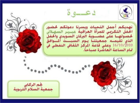 وذكرت منسقة الجمعية بان وليد لوكالة كردستان للأنباء (آكانيوز) أن "الجمعية ستقيم حفلها التكريمي احتفاءً بالمرأة العراقية عبير السهلاني اثر فوزها بعضوية البرلمان السويدي في الانتخابات الأخيرة".